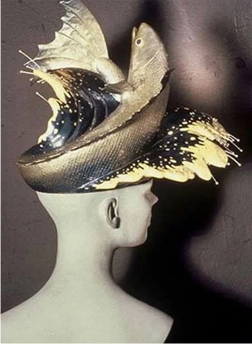 A: One name is synonymous with my first big break, sale, artist, and client. That name is Adam Kurtzman, aka “The Genius of Papier-Mache – NEW YORK POST. I remember being at his studio and seeing a commission of a headpiece for a wedding veil in the shape of a fish. It was such an amazing sculpture, which led to a series titled FISH HATS, each one more elaborate than its predecessor.